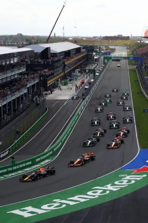 Sunday is the main event. The full Formula One grid lines up for the Dutch Grand Prix. Fans fill the grandstands, creating a loud and focused atmosphere around the circuit.