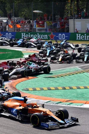 Sunday is the main event. The full Formula One grid lines up for the Italian Grand Prix. Grandstands fill with fans, creating a loud and focused atmosphere.
