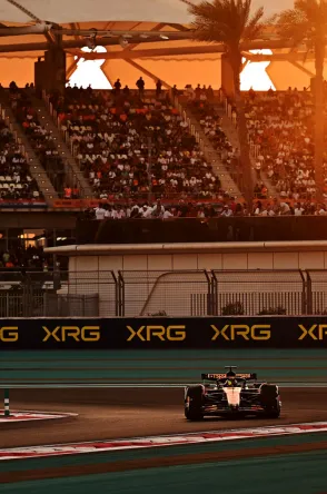 Sunday is the main event. The full Formula One grid lines up for the Abu Dhabi Grand Prix. The race begins in daylight and ends under floodlights as the sun sets.