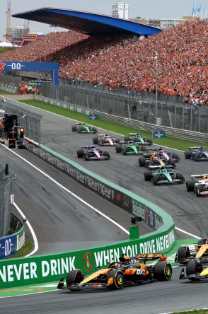 Sunday is the main event. The full Formula One grid lines up for the Dutch Grand Prix. Fans fill the grandstands, creating a loud and focused atmosphere around the circuit.